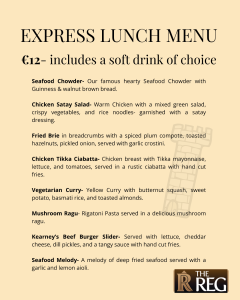 The Reg are delighted to be launching their Winter Express Lunch Menu from Monday, 19th January.